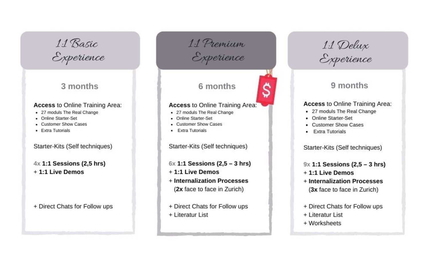 The 1:1 trainings are intense, that’s why I only can train and support a limited amount of clients at the same time. So take now your chance and subscribe for your personal Real Change.