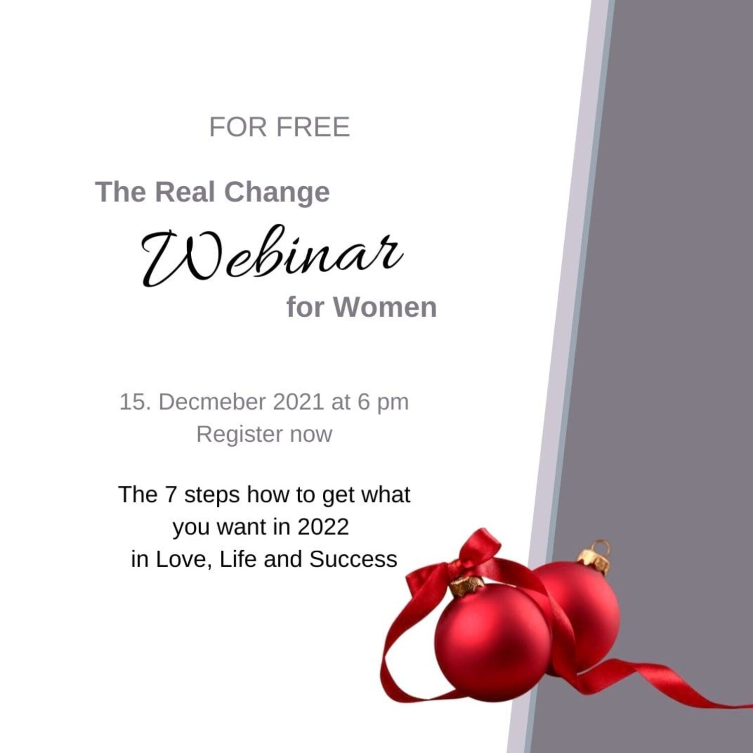 Save now your seat and learn the 7 steps how to transform your life in Love, Life and Success!